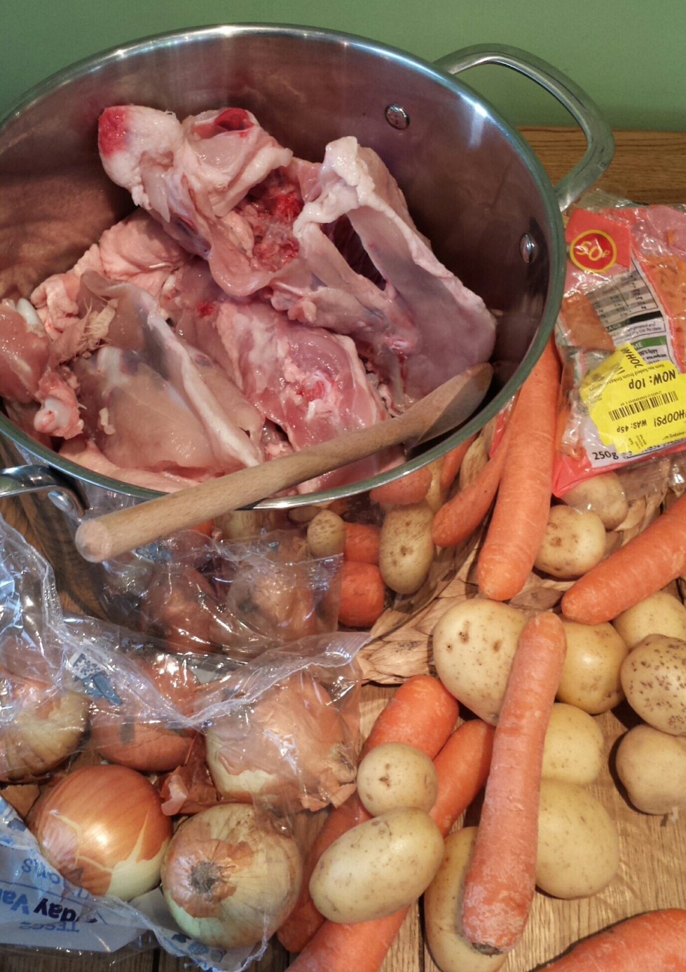 Intrigued by the idea of turning boiled carcasses into a meal I set up my Saturday to do just that…