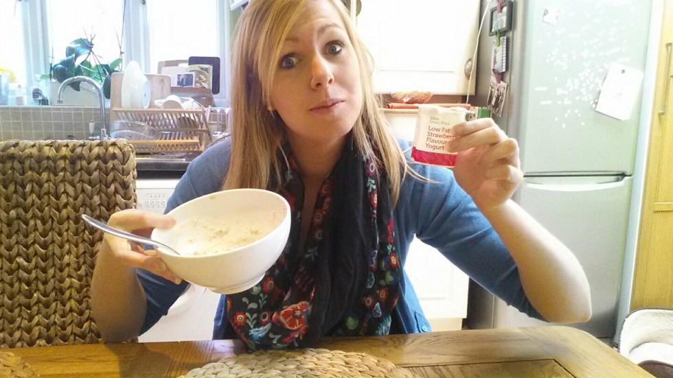 In a bid to liven up the porridge I mix in some value yoghurt this morning.