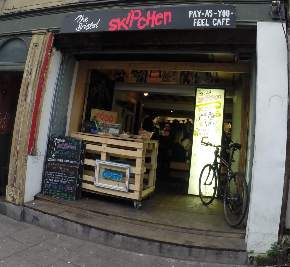 9am and I’m off to visit my friends Sian and Alex in Bristol, we’re going to lunch in a place called Skipchen. Skipchen is part of The Real Junk Food Project, it’s a cafe which purely serves food past its sell-by date intercepted from supermarket and restaurant skips.