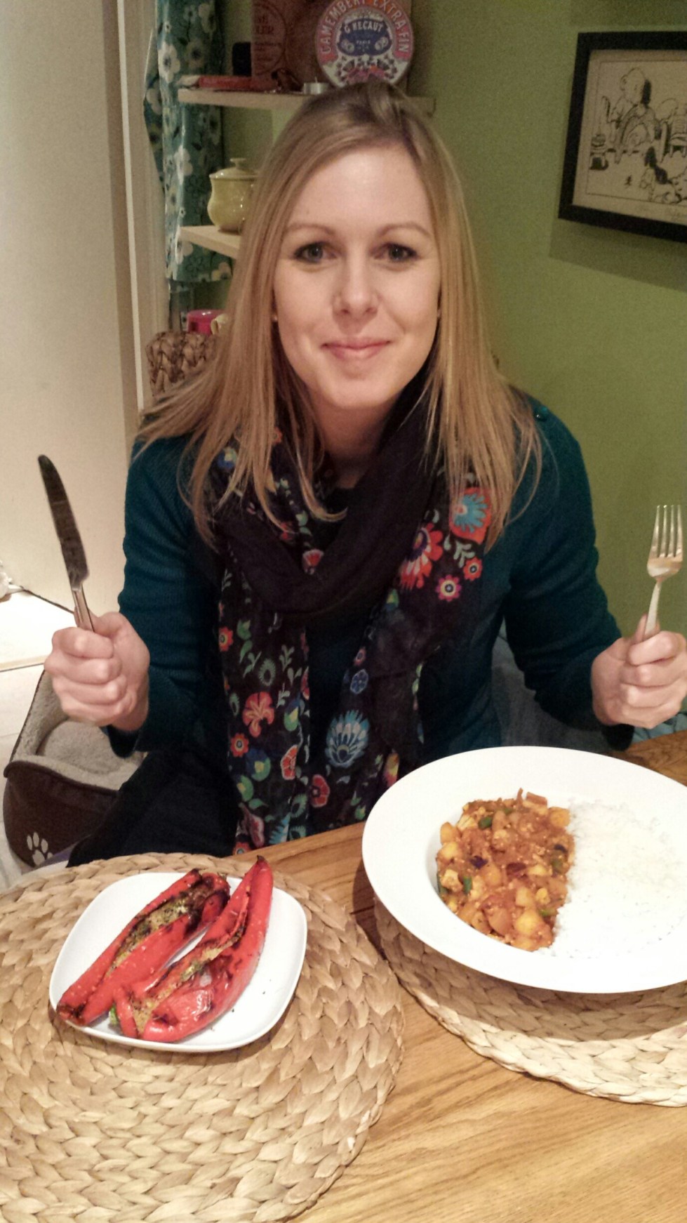 I make an assault on the delicious vegetable curry (comprising onion, cauliflower, beans, potatoes, coriander and spices) and rice. However it’s not long before I’m feeling full, I think my stomach has definitely shrunk during the course of this challenge. Like the peppers, I’m stuffed.