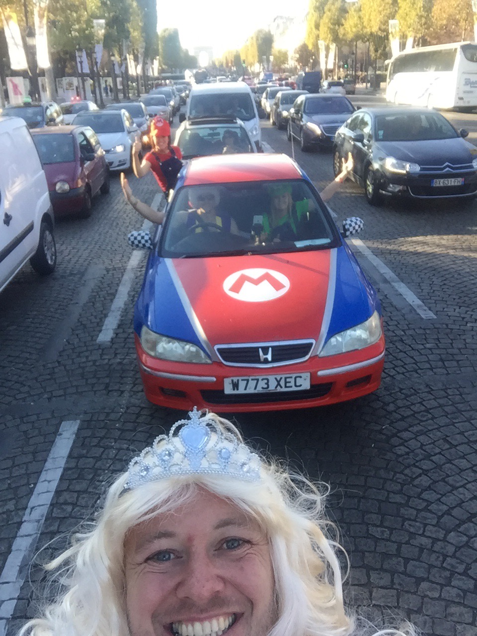 Lionel has set us a challenge of taking a group photo in front of the Eiffel tower and arc de triumphe and so we must venture into the centre of this bustling city in our red and blue beast. Princess Peach takes every opportunity in traffic queues and red lights to leg it out the vehicle for some death defying selfies. The traffic in Paris is pandemonium and just as soon as you see a space it’s been filled by a vespa.
