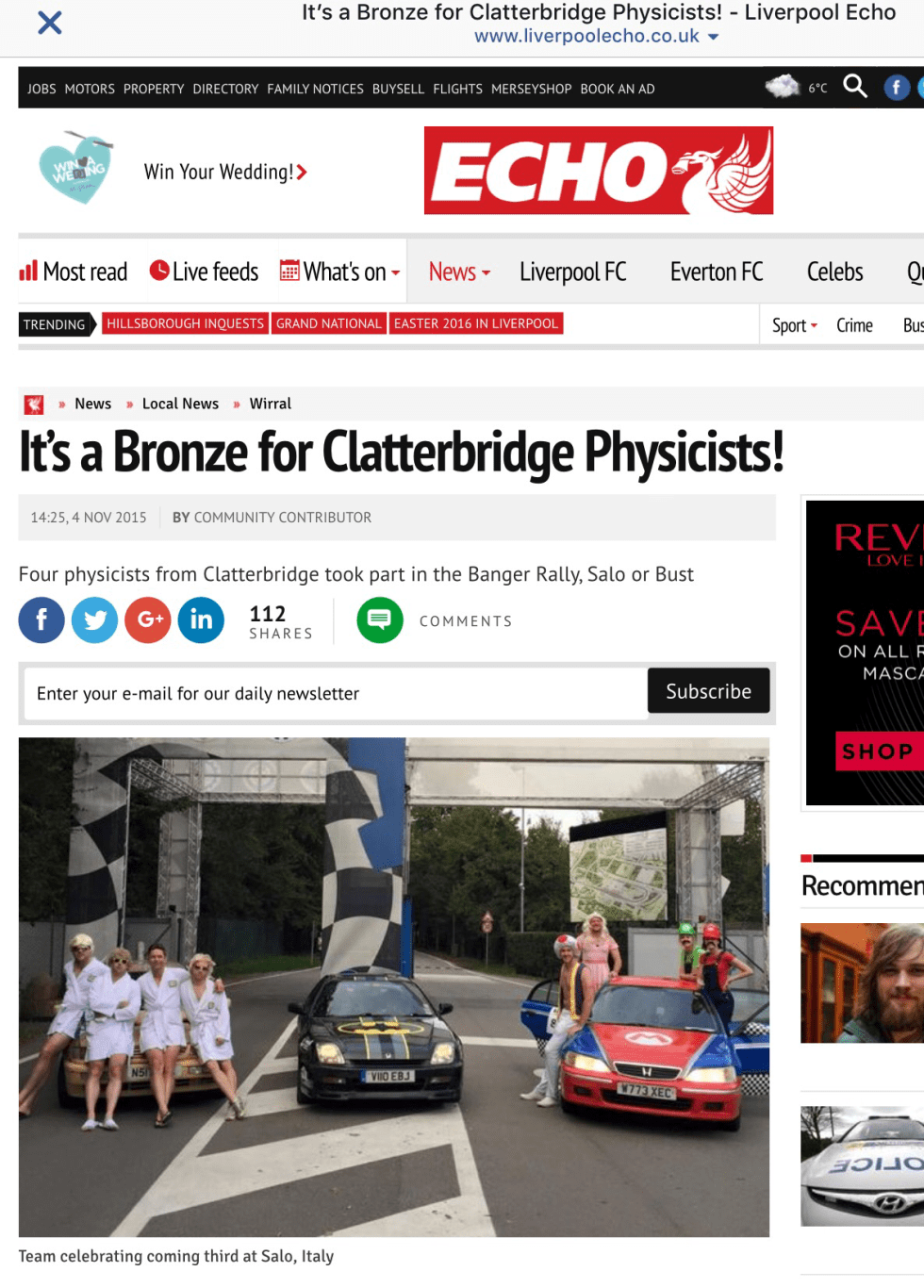 Back in Blighty after a spell in Pisa and Rome, we chucked the faithful banger on e-bay and make a whopping £150 profit for the Clatterbridge Cancer Trust!! We sold our pride and joy to a 65 year old Super Mario fan who wants to take it around the Norfolk Broads! It’s good to know the adventures will continue. All in all an excellent rally experience!